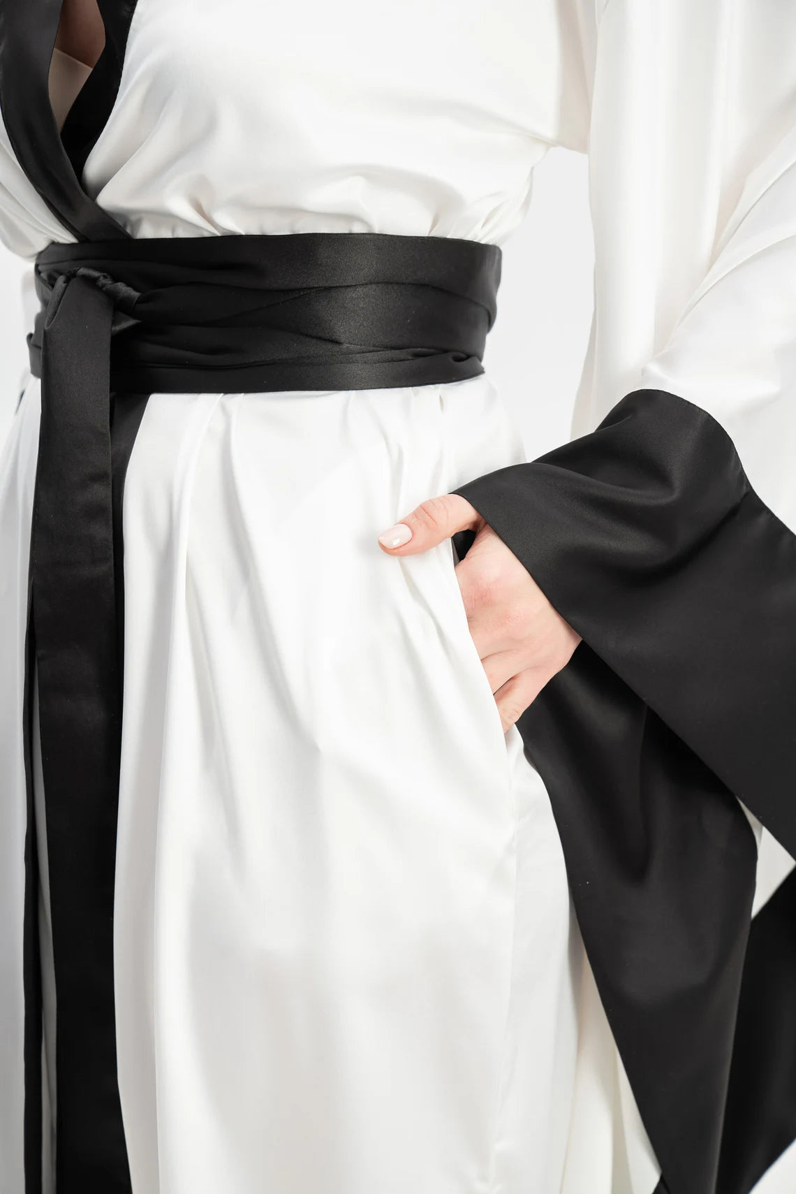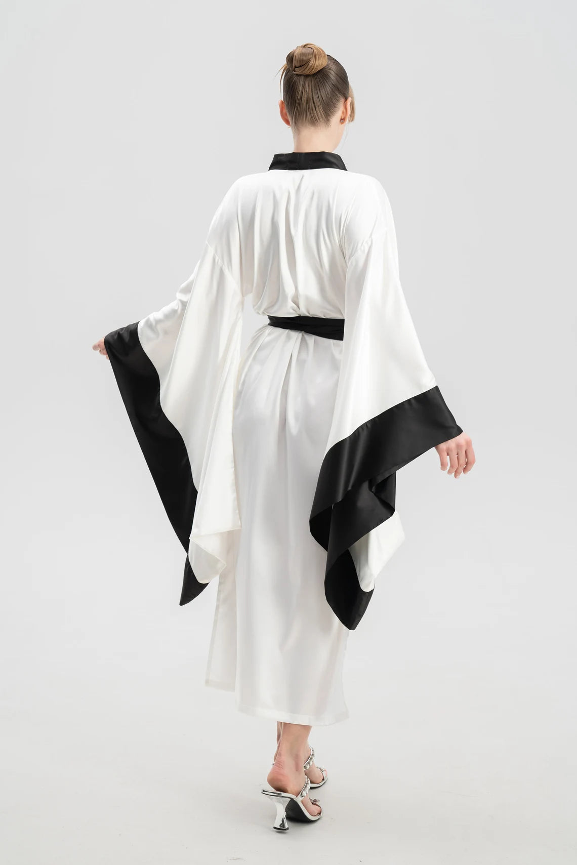 Black & White Satin Robe — Only at Stareoutfit.